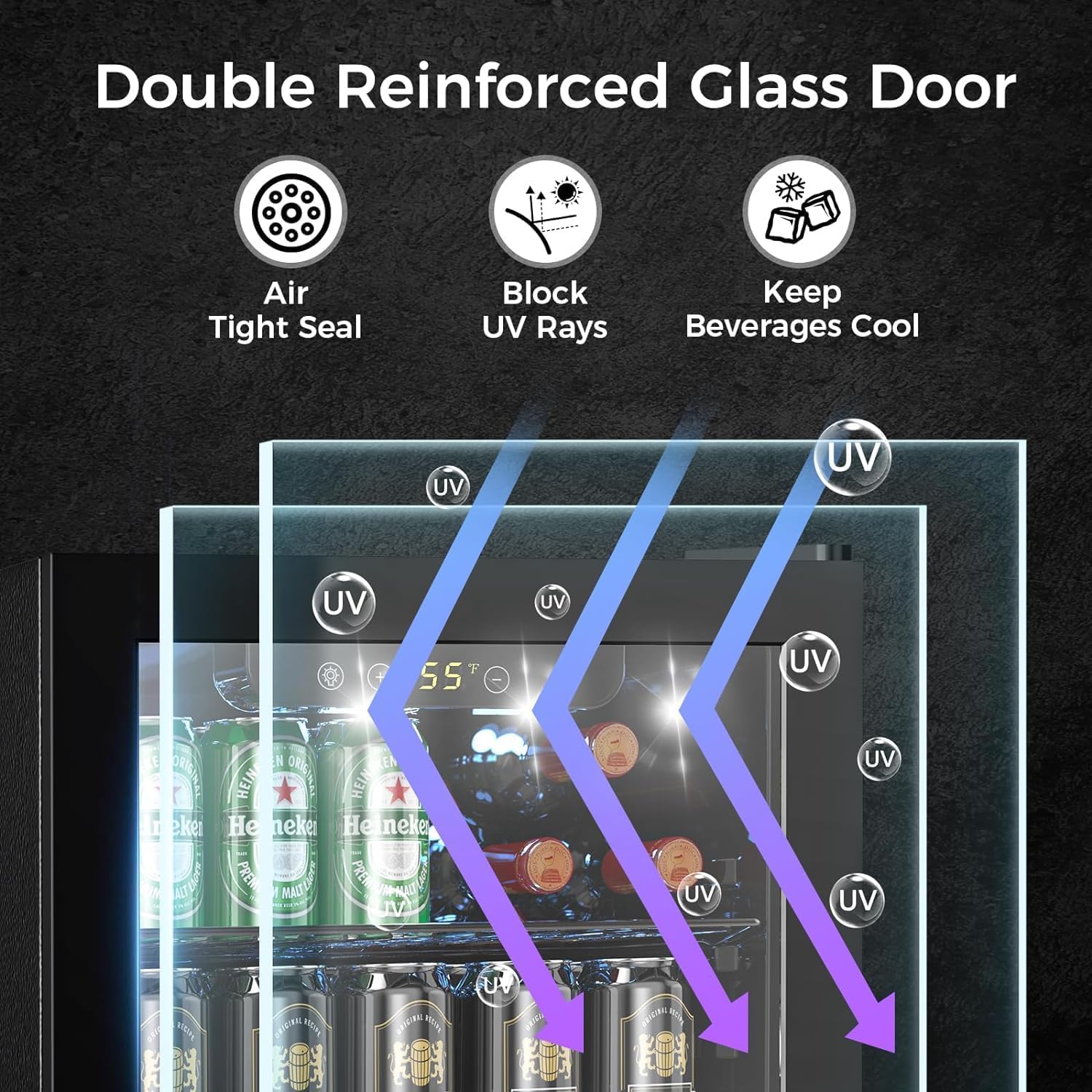 Antarctic Star Mini Fridge-95 Can Beverage Refrigerator Wine Cooler Clear Front Glass Door Small Drink Touch Screen for Soda Beer Bar Office Home 2.6 cu.ft