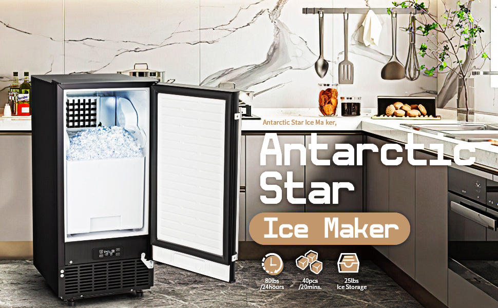 Antarctic Star Ice Maker Ice Scoop Handle Water Inlet Pipe Draining Pipe Quick Connector 40 Square Ice Cubes in 20 Minutes 80lbs/24H 24-Hour Timer Self-Cleaning