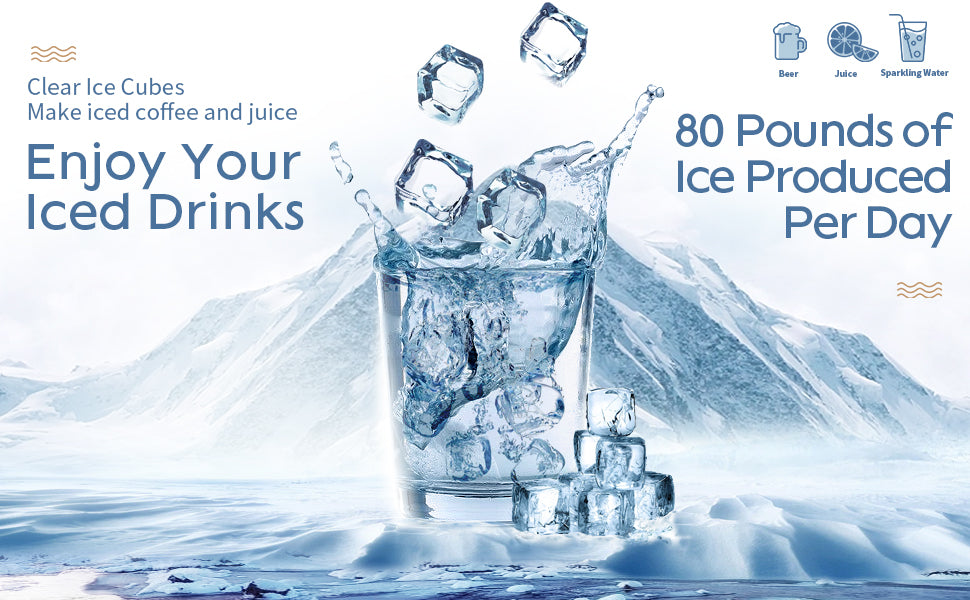 - 【Quickly Make Ice】This ice maker can make 40 ice cubes in 15-30 minutes and 80 pounds of ice in 24 hours, which can fully satisfy your ice needs. The water tank of the ice maker has a capacity of 0.9 liters. The ice cubes are square and clear. The thickness of the ice cubes can be adjusted according to your preference.