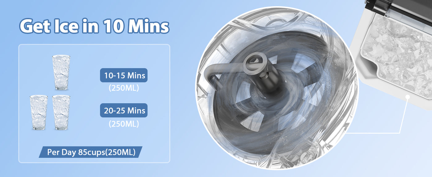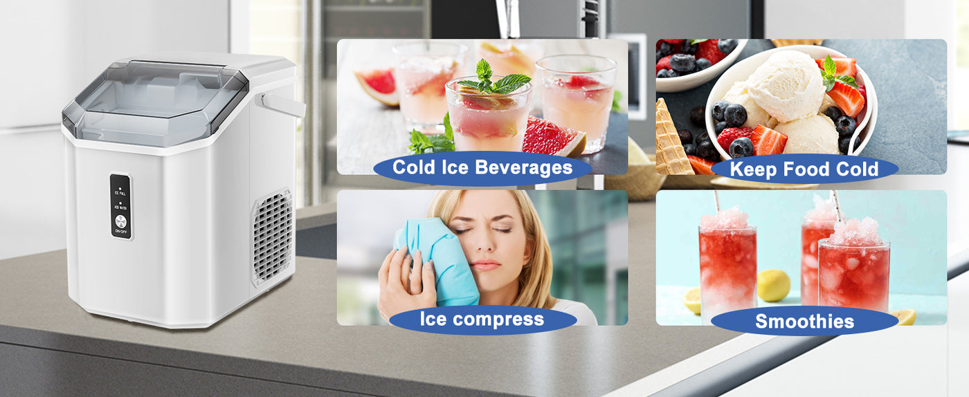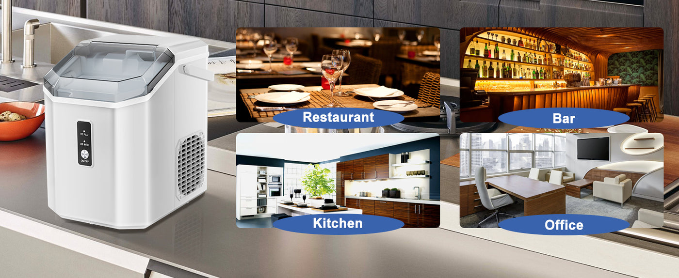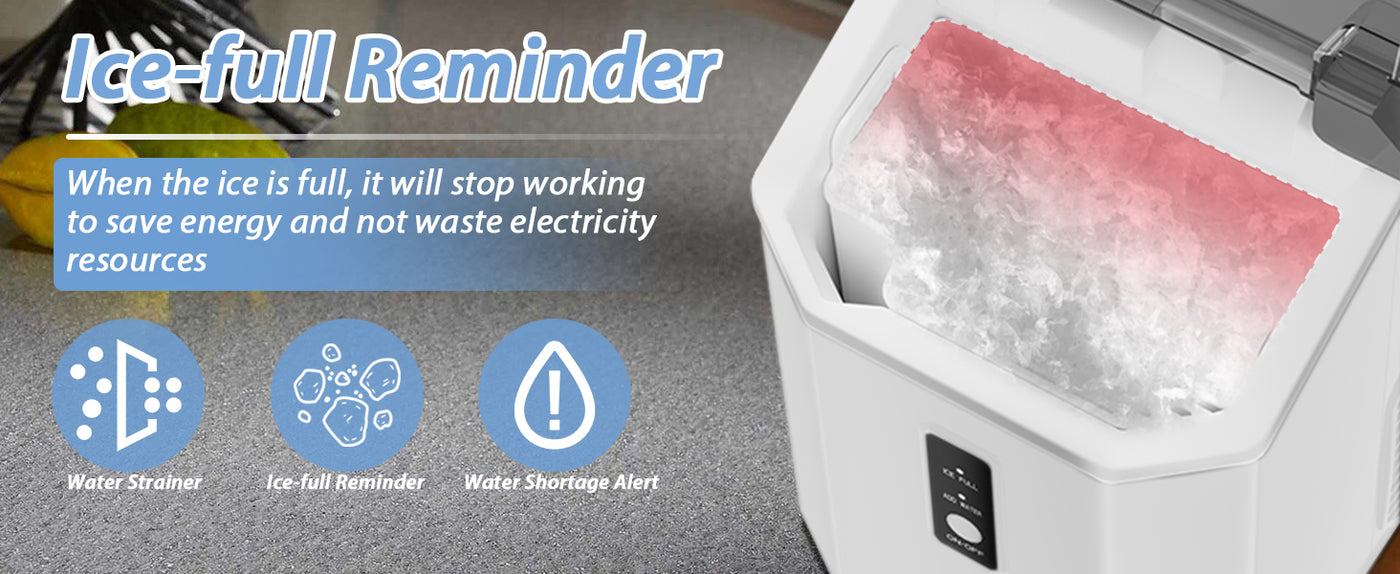 Differ from other ice makers, this nugget ice maker has a handle, which you can easily carry it from the kitchen to the living room, even to yard.