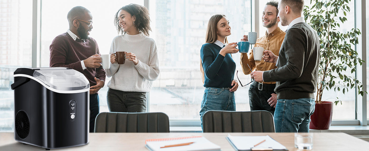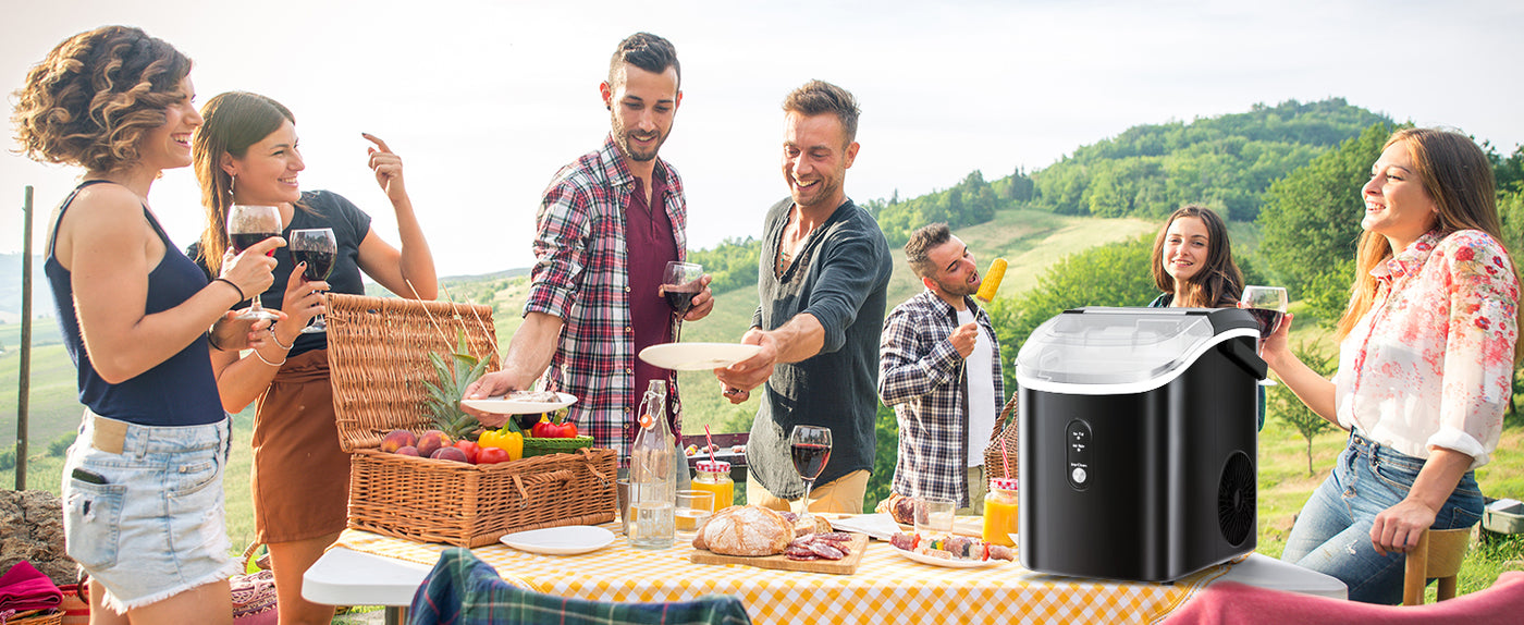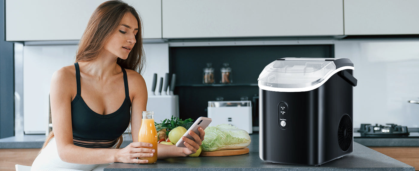 Unlike other ice makers, this nugget ice maker includes a handle for easy transport from the kitchen to the living room or even the yard.