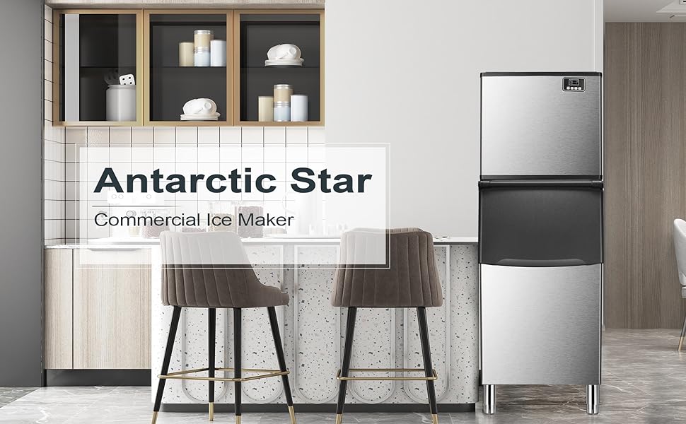 The Antarctic Star commercial ice maker efficiently creates ice, perfect for cooling down and enhancing your food and drinks during the summer heat.