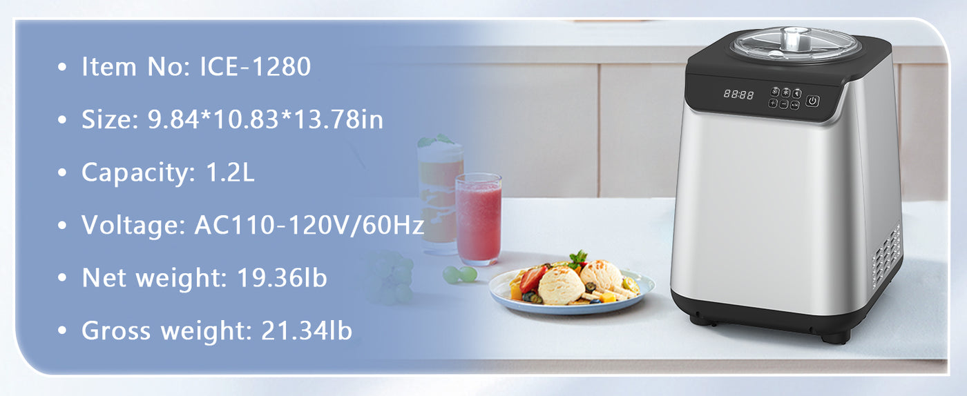 • 【1.2L CAPACITY】: 1.2L capacity can meet whole family’s needs. You can make ice cream and yogurt anytime at home. This capacity is also suitable for party at home. Start making before the meal, and you can have a sweet ice cream or yogurt after the meal. Eating an ice cream while watching TV or reading a book will make your leisure time happier.