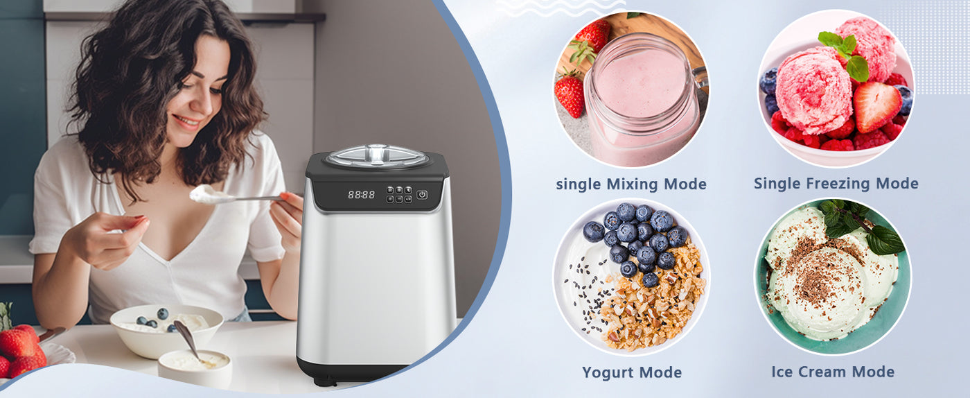 • 【3 MODES】: The ice cream maker has 3 modes: ice cream, single mixing and single cooling. Can meet your various needs for Gelato, Frozen Yogurt, Sorbet and so on. Homemade ice cream, delicious and healthy. It can also stimulate children's hands-on ability. In the hot summer, if you don't want to go out, you can eat cool ice cream at home.