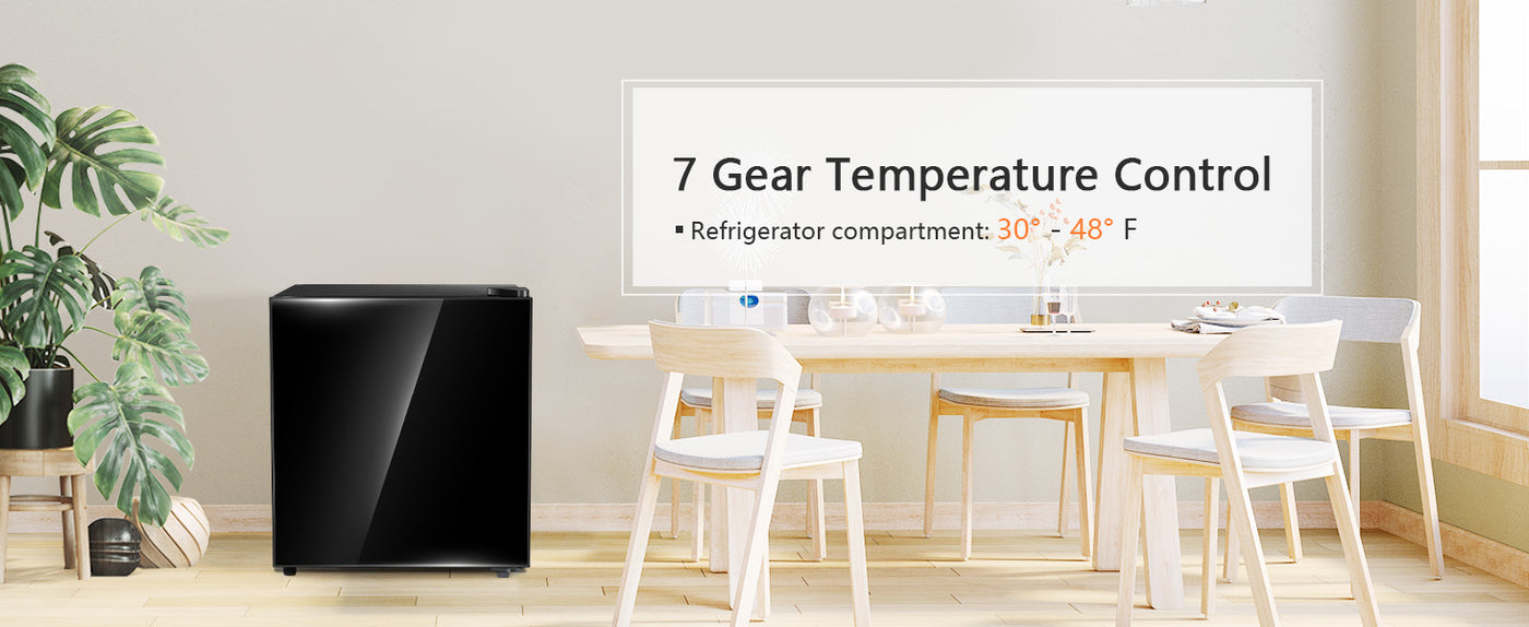 - ADJUSTABLE TEMPERATURE CONTROL: Features 7 levels of temperature adjustment to suit your specific needs or room temperature. Setting "3" is ideal for home or office use. The small freezer compartment is suitable for ice packs, most frozen dinners, and ice cubes.