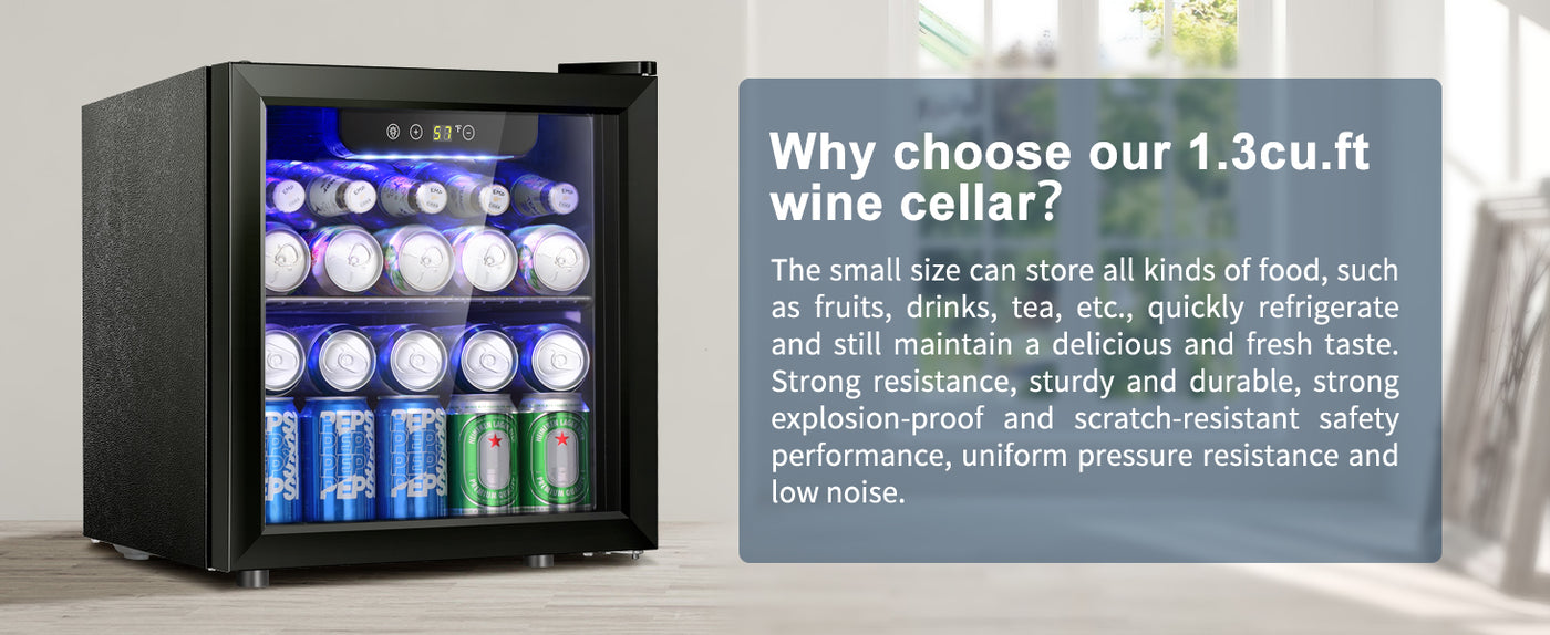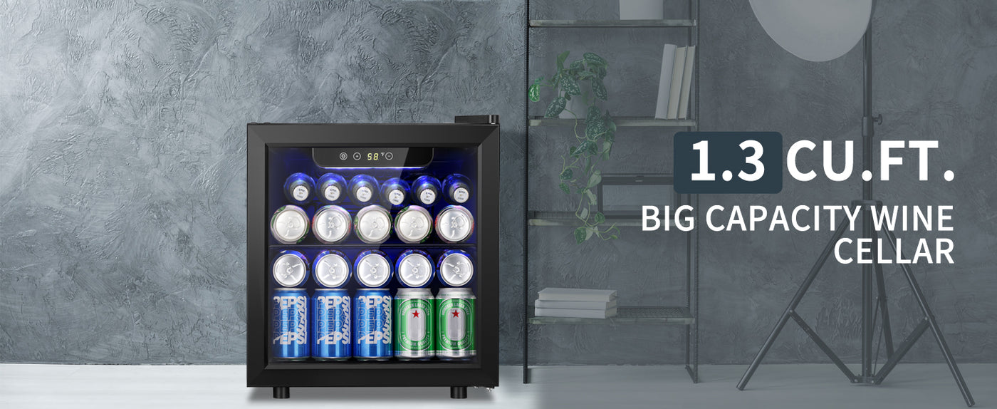 - COMPACT BUT BIG STORAGE: 1.3 cu.ft drink bottles capacity, also better for canned beer and beverage storage. Horizontal racking is a space-efficient way to store your bottles, and it definitely can't harm your drink.