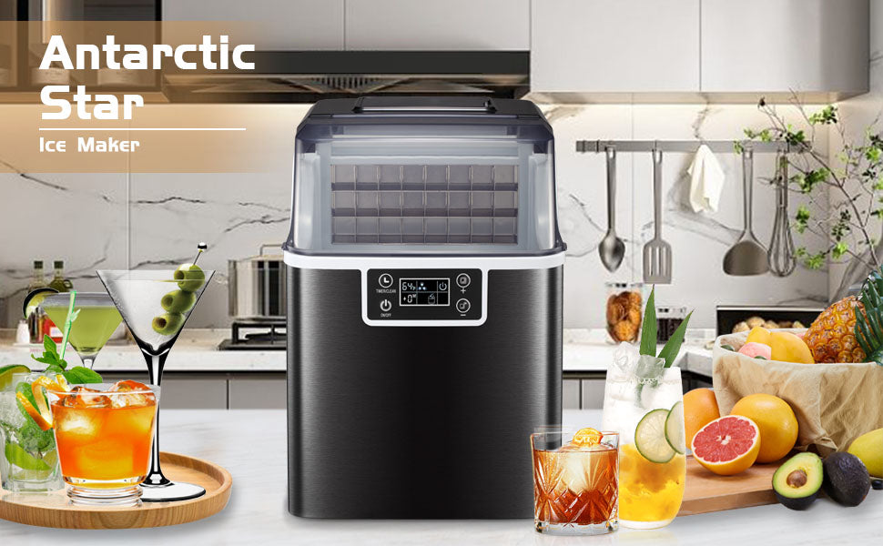 Antarctic Star Countertop Ice Maker Machine ,53lbs Square Ice Cubes in 24H,24 Ice Cubes Ready in 8 Mins, Self-Cleaning Ice Scoop and Basket for Home Kitchen Office Bar Party Black