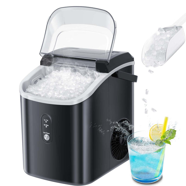 Nugget Countertop Ice Maker with Soft Chewable Ice, 34Lbs/24H, Pebble Portable Ice Machine with Ice Scoop, Self-Cleaning
