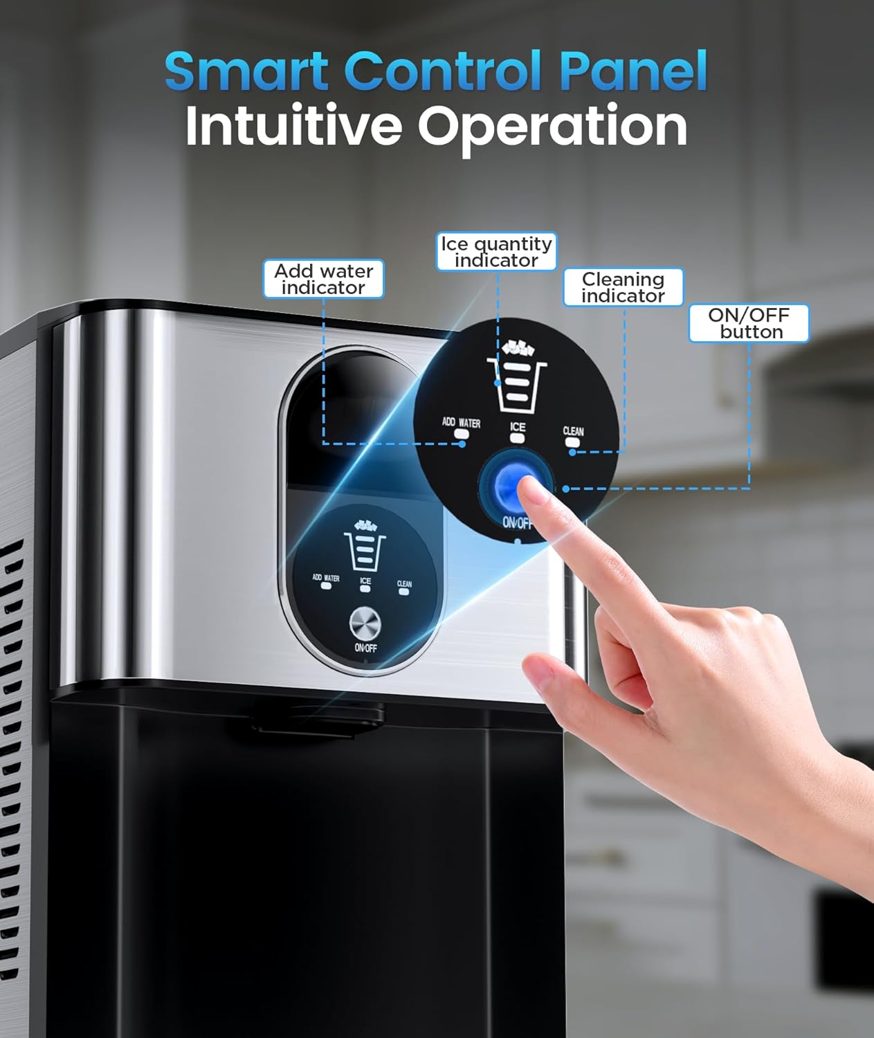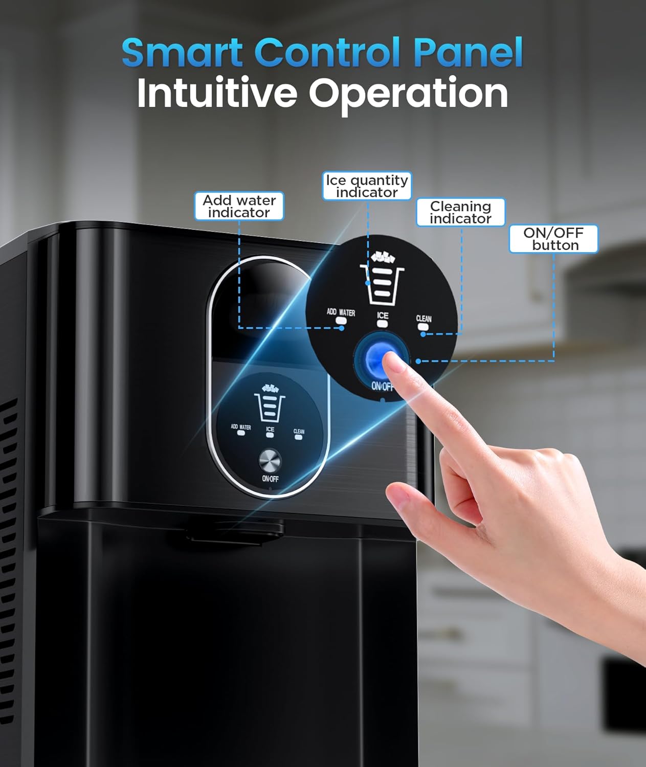 - QUIET AND USER FRIENDLY: It makes ice with low noise. Only need to press one button, helps you to quickly understand how to use it. After ice making finished, you can easily pull the wrench to let the ice out to your cup. When the water is insufficient, the indicator light will turn on.